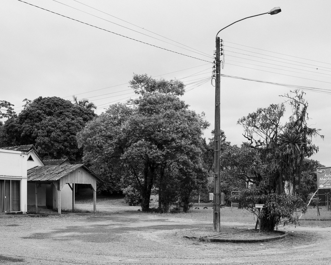 Como comentei na última newsletter, voltei ao sul no final de janeiro e tentei uma abordagem diferente. Em vez de caminhar, desta vez peguei uma carona, o que acabou confirmando, na prática, a ideia presente no texto de Wenders, e visitei alguns pontos que já havia mapeado. Nesse percurso de aproximadamente quatro quilômetros, foi possível perceber mudanças significativas na paisagem. Nos primeiros dois quilômetros, casas e comércios se sucedem quase lado a lado. Nos quatro seguintes, surge um espaçamento, um respiro: muito verde, pastagens e construções esparsas que transformam rapidamente o cenário. Mais adiante, ao se aproximar novamente do centro, a paisagem volta a ser tomada por casas, comércios e pequenos prédios.